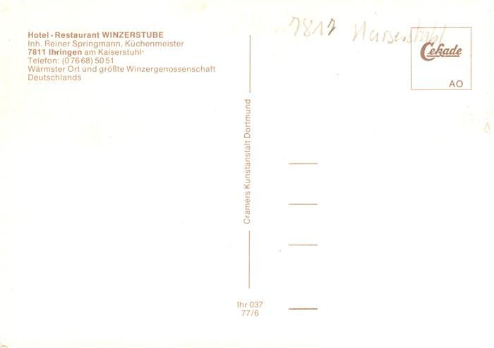 73929134 Ihringen Kaiserstuhl Hotel Restaurant Winzerstube Gastraeume postalisch nicht gelaufen Erhaltung siehe scans [WerneD78] Wern Katcode 11110008315059