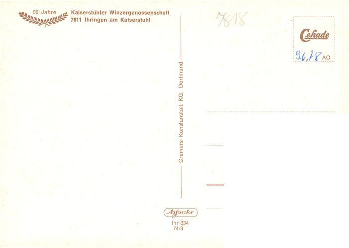 73929077 Ihringen Kaiserstuhl Kaiserstuehler Winzergenossenschaft postalisch nicht gelaufen Erhaltung siehe scans [WerneD78] Wern Katcode 11110008315059