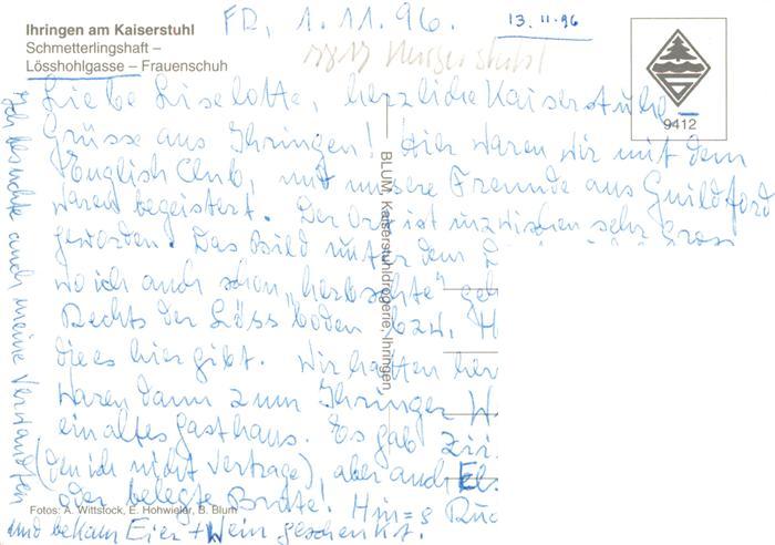 73929108 Ihringen Kaiserstuhl Panorama Schmetterlingshaft Loesshohlgasse Frauenschuh postalisch nicht gelaufen Erhaltung siehe scans [WerneD78] Wern Katcode 11110008315059