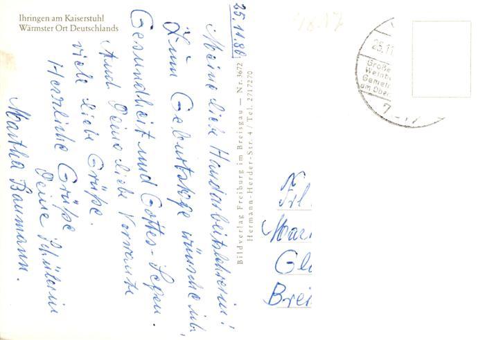73929107 Ihringen Kaiserstuhl Panorama Winzergenossenschaft Ortspartie Kirche postalisch gelaufen Erhaltung siehe scans [WerneD78] alte Postkarte Wern Katcode 11110008315059