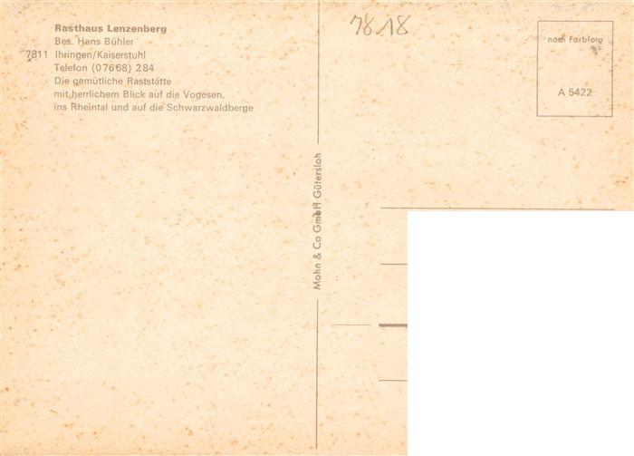 73929090 Ihringen Kaiserstuhl Rasthaus Lenzenberg postalisch nicht gelaufen Erhaltung siehe scans [WerneD78] Wern Katcode 11110008315059