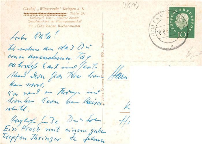 73929539 Ihringen Kaiserstuhl Weinkeller Fliegeraufnahme Terrasse Winzerstube postalisch gelaufen Erhaltung siehe scans [WerneD78] alte Postkarte Wern Katcode 11110008315059