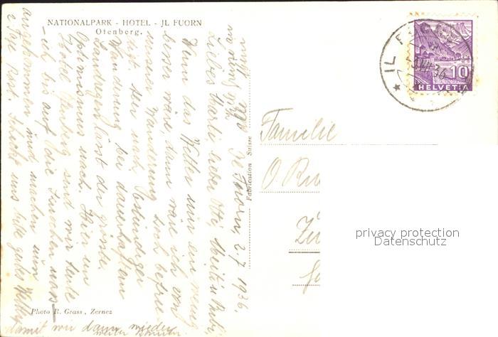 11837182 alte Postkarte Il Fuorn Nationalpark Hotel Otenberg postalisch gelaufen Erhaltung siehe scans KatCode: 11470100335240
