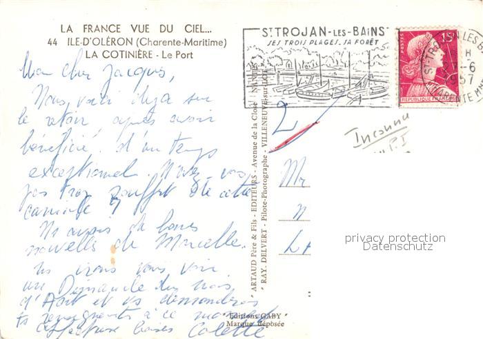 13602769 Ile d Oleron Fliegeraufnahme Port Cotiniere postalisch gelaufen Erhaltung siehe scans [LiesaD40] carte postale Lies Katcode 11170017217385