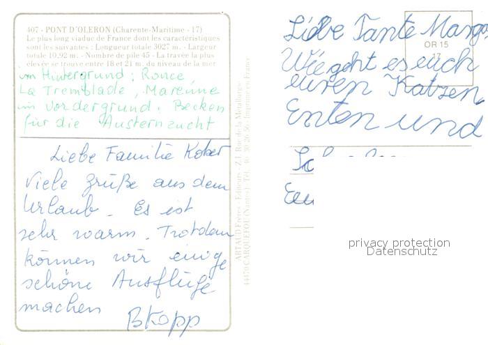 13354660 Ile d Oleron Pont d’Oleron Vue aerienne postalisch nicht gelaufen Erhaltung siehe scans [WerneD78] KatCode: 11170017217385