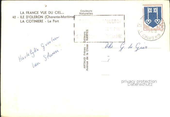 12065985 carte postale Ile d Oleron Port vue aerienne postalisch gelaufen Erhaltung siehe scans KatCode: 11170017217385