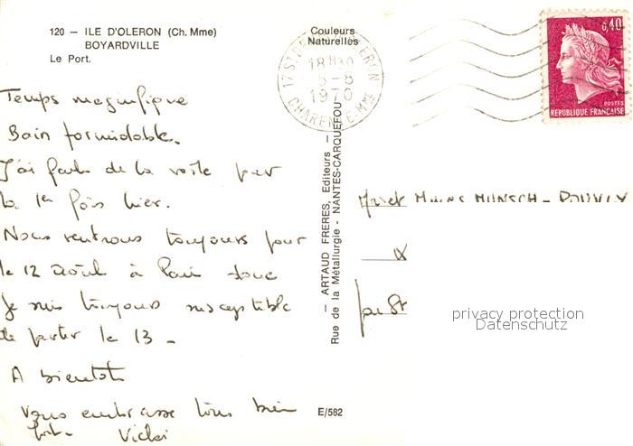 13606384 carte postale Ile d Oleron Port postalisch gelaufen Erhaltung siehe scans [LiesaD40] KatCode: 11170017217385