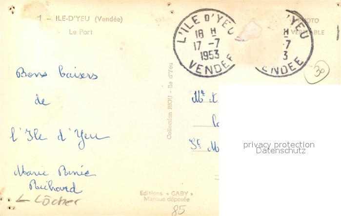 13486565 carte postale Ile d Yeu Le Port postalisch gelaufen Erhaltung siehe scans [WerneD78] KatCode: 11170085385194