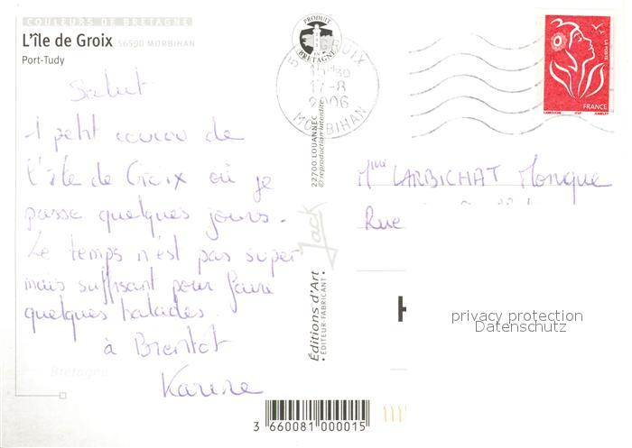 13536138 carte postale Ile de Groix Port Tudy vue aérienne postalisch gelaufen Erhaltung siehe scans [FriedD77] KatCode: 11170056156121