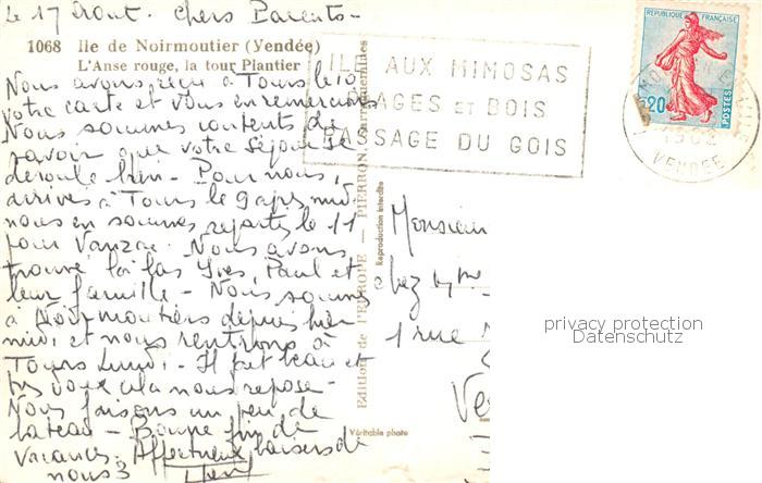 13825503 Ile de Noirmoutier Anse rouge la Tour Plantier postalisch gelaufen Erhaltung siehe scans [FriedD77] carte postale Frie Katcode 11170085385163