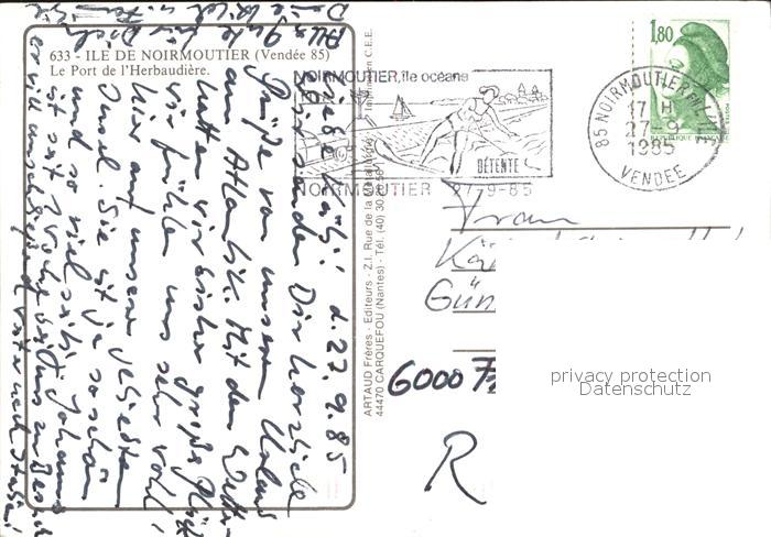 12492007 carte postale Ile de Noirmoutier Fliegeraufnahme Hafen postalisch gelaufen Erhaltung siehe scans KatCode: 11170085385163