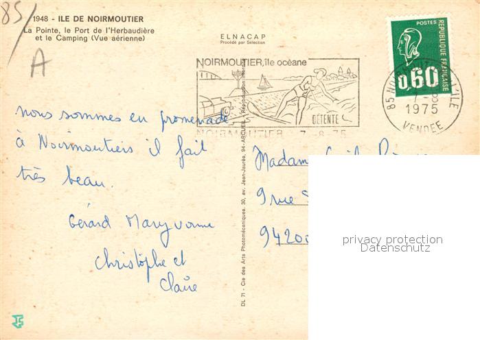 13162343 carte postale Ile de Noirmoutier La Pointe Port de l Herbaudière et Camping vue aérienne postalisch gelaufen Erhaltung siehe scans [FriedD77] KatCode: 11170085385163