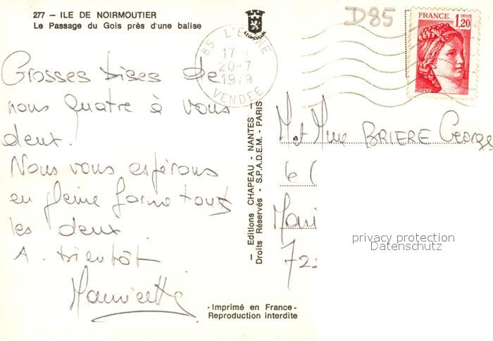 13579007 carte postale Ile de Noirmoutier Passage du Gois près d une balise postalisch gelaufen Erhaltung siehe scans [FriedD77] KatCode: 11170085385163