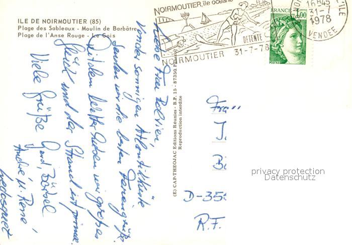 13258287 carte postale Ile de Noirmoutier Plage des Sableaux Moulin de Barbatre Plage de l’Anse Rouge Le Gois postalisch gelaufen Erhaltung siehe scans [WerneD78] KatCode: 11170085385163