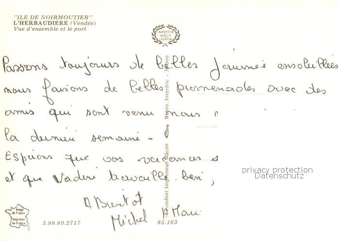 13536246 Ile de Noirmoutier Port de l Herbaudiere vue aérienne postalisch nicht gelaufen Erhaltung siehe scans [FriedD77] KatCode: 11170085385163