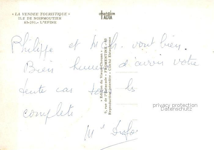 13617875 Ile de Noirmoutier Vue partielle La Plage Le Moulin Le Camping Pont de Noirmoutier postalisch nicht gelaufen Erhaltung siehe scans [WerneD78] Wern Katcode 11170085385163