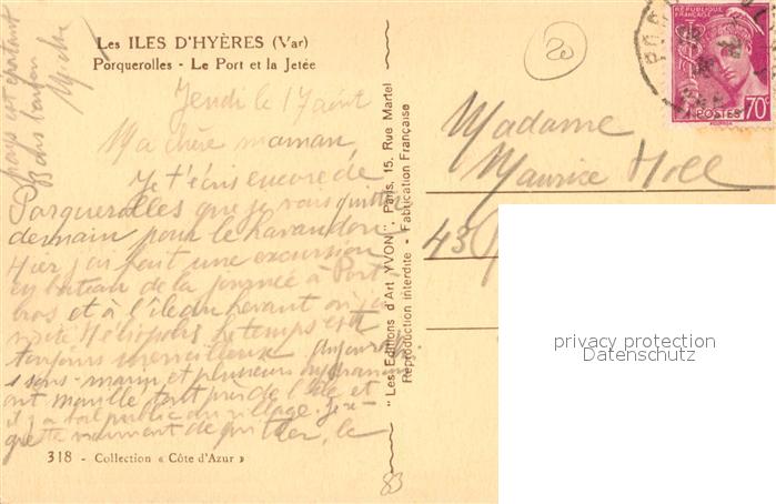 13484592 carte postale Ile de Porquerolles Le Port et la Jetée des voiliers postalisch gelaufen Erhaltung siehe scans [FriedD77] KatCode: 11170083283069