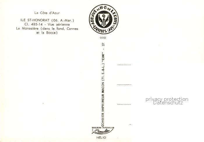 13606619 Ile Saint-Honorat Alpes Maritimes Le Monastère et au fond Cannes et la Bocca vue aérienne postalisch nicht gelaufen Erhaltung siehe scans [FriedD77] KatCode: 11170006106029