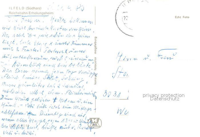 73144621 alte Postkarte Ilfeld Suedharz Reichsbahn-Erholungsheim postalisch gelaufen Erhaltung siehe scans [NatalD47] KatCode: 11110016062022