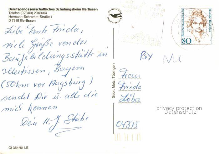 72784618 alte Postkarte Illertissen Berufsgenossenschaftliches Schulungsheim postalisch gelaufen Erhaltung siehe scans [LiesaD40] KatCode: 11110009775129