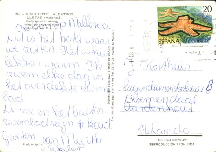old postcard Illetas Grand Hotel Albatros postalisch gelaufen