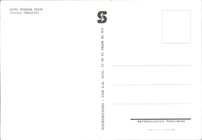 Illetas Hotel Bonanza Playa Piscina vista aerea postalisch nicht gelaufen Erhaltung siehe scans
