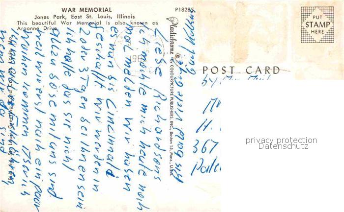 72754148 old postcard Illinois City War Memorial Jones Park postalisch gelaufen Erhaltung siehe scans [LiesaD40] KatCode: 14140150000000