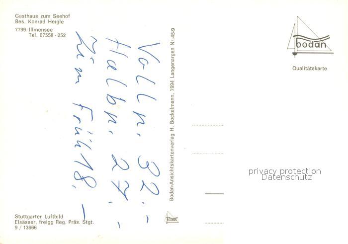 73642793 Illmensee Gasthaus Seehof Fliegeraufnahme postalisch nicht gelaufen Erhaltung siehe scans [FriedD77] KatCode: 11110008437056