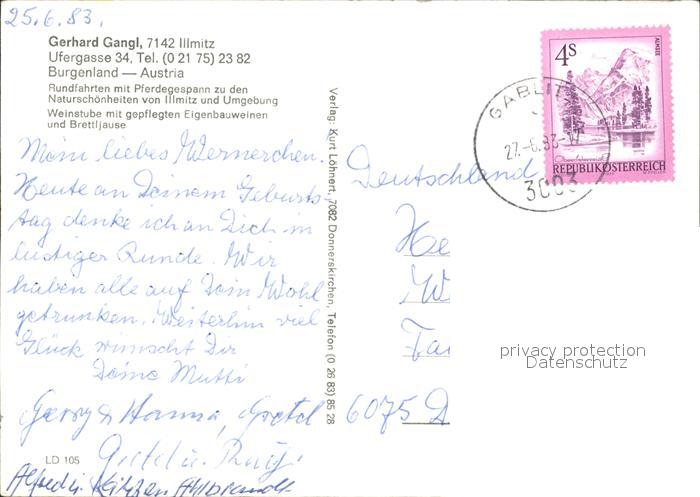 11923285 alte Postkarte Illmitz Pferderundfahrt Gerhard Gangl Weinstube postalisch gelaufen Erhaltung siehe scans KatCode: 11390112010709