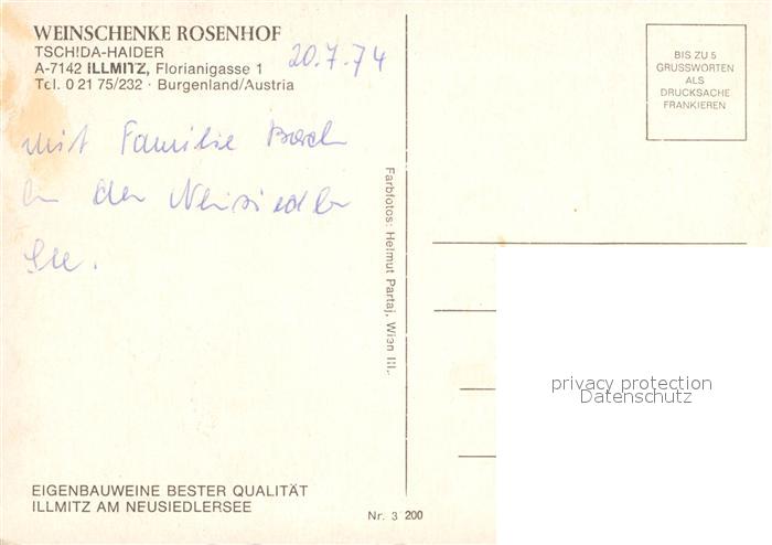 12973087 Illmitz Weinschenke Rosenhof postalisch nicht gelaufen Erhaltung siehe scans [NatalD47] KatCode: 11390112010709