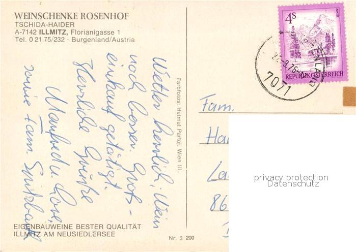 73049151 alte Postkarte Illmitz Weinschenke Rosenhof postalisch gelaufen Erhaltung siehe scans [KathaD81] KatCode: 11390112010709