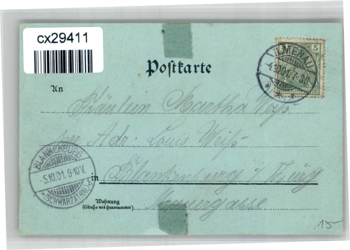 30924342 alte Postkarte Ilmenau Thueringen postalisch gelaufen KatCode: 11110016070029