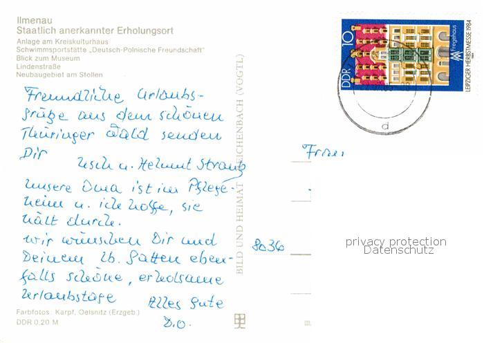 72625644 alte Postkarte Ilmenau Thueringen Anlage Kreiskulturhaus Schwimmsportstaette Museum Lindenstr Neubauten am Stollen postalisch gelaufen Erhaltung siehe scans [WerneD78] KatCode: 11110016070029