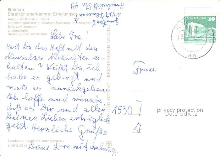 alte Postkarte Ilmenau Thueringen Anlage Kreiskulturhaus Schwimmsportstaette Museum Lindenstrasse postalisch gelaufen Erhaltung siehe scans