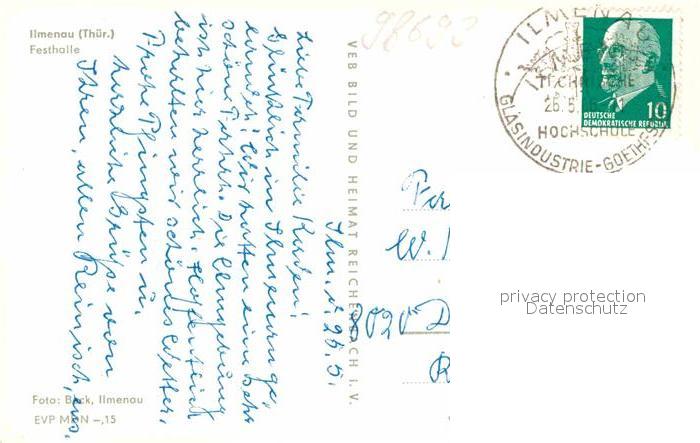 72633727 alte Postkarte Ilmenau Thueringen Festhalle postalisch gelaufen Erhaltung siehe scans [FriedD77] KatCode: 11110016070029