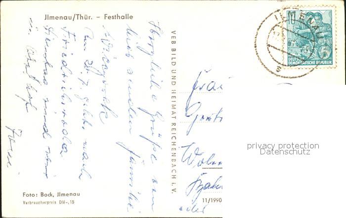 72428992 alte Postkarte Ilmenau Thueringen Festhalle postalisch gelaufen Erhaltung siehe scans KatCode: 11110016070029