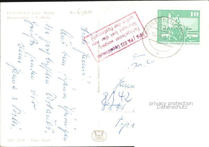 71874894 alte Postkarte Ilmenau Thueringen Fliegeraufnahme Festhalle postalisch gelaufen Erhaltung siehe scans KatCode: 11110016070029