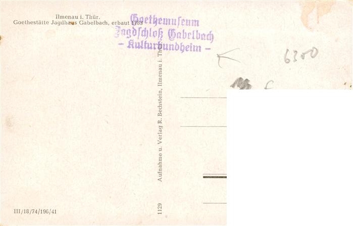 73907504 Ilmenau Thueringen Goethestaette Jagdhaus Gabelbach postalisch nicht gelaufen Erhaltung siehe scans [FriedD77] KatCode: 11110016070029