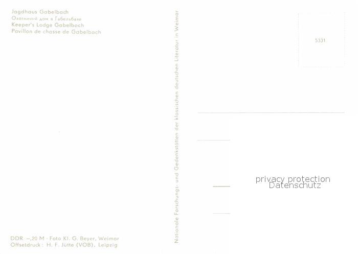 72825079 Ilmenau Thueringen Jagdhaus Gabelbach postalisch nicht gelaufen Erhaltung siehe scans [LiesaD40] KatCode: 11110016070029