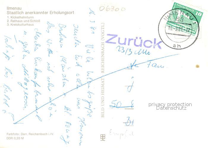 73042447 alte Postkarte Ilmenau Thueringen Kickelhahnturm Rathaus Schloss Kreiskulturhaus postalisch gelaufen Erhaltung siehe scans [FriedD77] KatCode: 11110016070029