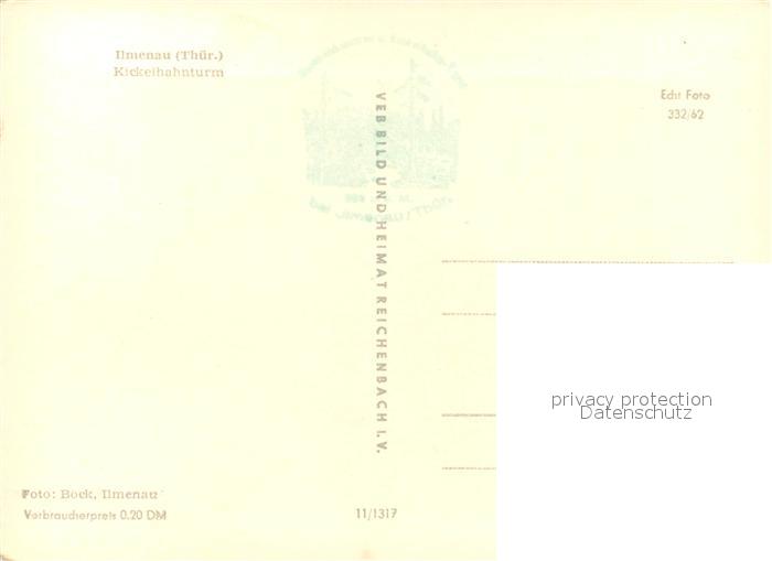 73132887 Ilmenau Thueringen Kickelhahnturm postalisch nicht gelaufen Erhaltung siehe scans [FriedD77] KatCode: 11110016070029