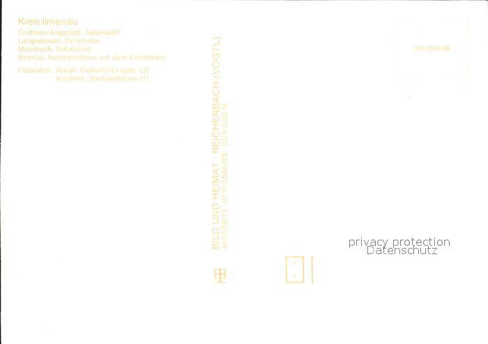 72322767 Ilmenau Thueringen Panorama Graefinau Angstaedt Langenwiesen Manebach Kickelhahn Aussichtsturm postalisch nicht gelaufen Erhaltung siehe scans KatCode: 11110016070029