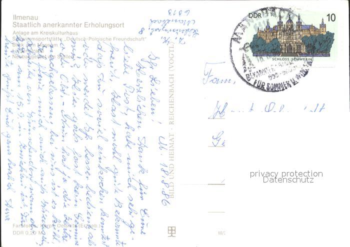72315190 alte Postkarte Ilmenau Thueringen Parkanlage Schwimmsportstaette DPF Museum Lindenstrasse Am Stollen postalisch gelaufen Erhaltung siehe scans KatCode: 11110016070029