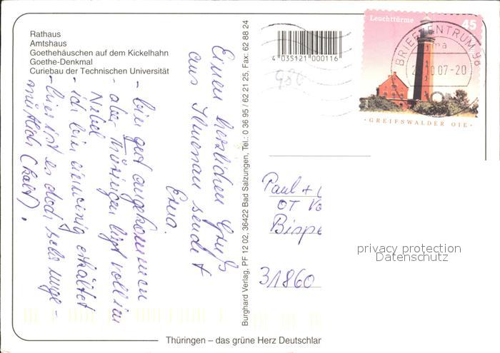72611808 alte Postkarte Ilmenau Thueringen Rathaus Amtshaus Goethehaeuschen Kickelhahn postalisch gelaufen Erhaltung siehe scans [NatalD47] KatCode: 11110016070029