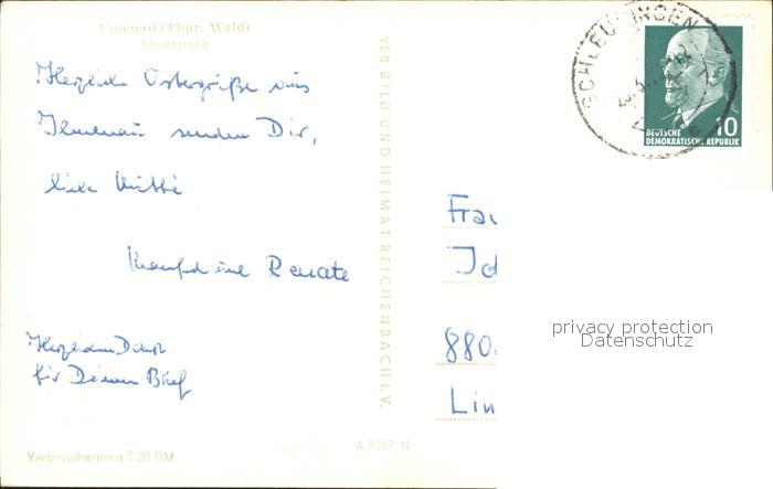 72027343 alte Postkarte Ilmenau Thueringen Stadtpark postalisch gelaufen Erhaltung siehe scans KatCode: 11110016070029