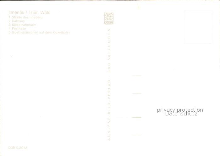 72033884 Ilmenau Thueringen Strasse des Friedens Rathaus Kickelhahnturm Festhalle Goethehaeuschen Wappen postalisch nicht gelaufen Erhaltung siehe scans KatCode: 11110016070029
