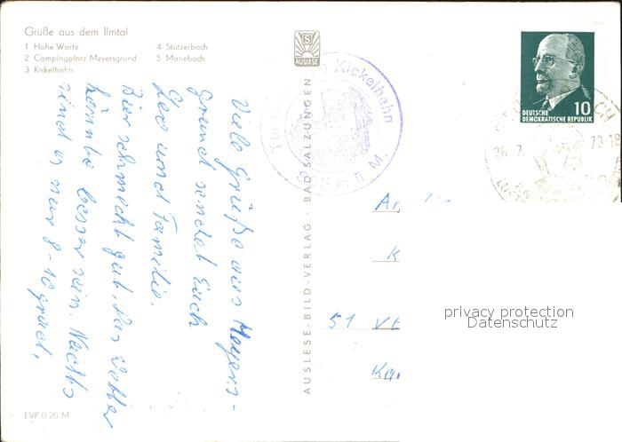 72557385 alte Postkarte Ilmtal Hohe Warte Campingplatz Meyersgrund Kickelhahn Stuetzerbach postalisch gelaufen Erhaltung siehe scans [KathaD79] KatCode: 11110016070056