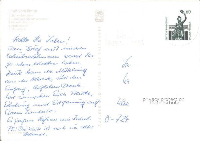 72372011 alte Postkarte Ilmtal Schwalbenstein Camping Meyersgrund Kickelhahnturm Stuetzerbach Manebach postalisch gelaufen Erhaltung siehe scans KatCode: 11110016070056