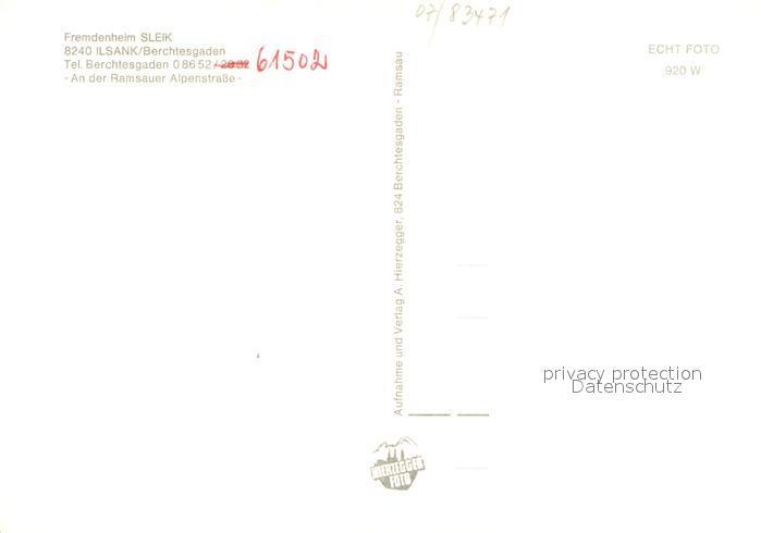 73646472 Ilsank Fremdenheim Sleik Ramsauer Alpenstrasse postalisch nicht gelaufen Erhaltung siehe scans [FriedD77] KatCode: 11110009172117