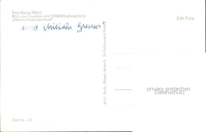 72404912 Ilsenburg Harz Blick vom Ilsestein FDGB Erholungsheim Martin Andersen Nexoe postalisch nicht gelaufen Erhaltung siehe scans KatCode: 11110015085190